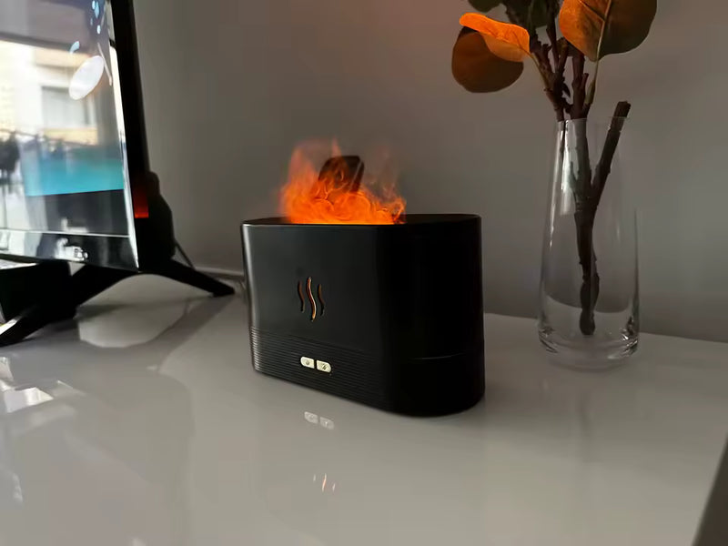 Elevate your living space with our Ultrasonic Flame Diffuser, a sophisticated fusion of advanced wellness technology and contemporary design. Engineered to enhance air quality while creating a serene, visually stunning environment, this device utilizes high-frequency ultrasonic vibrations to transform water and essential oils into a microscopic mist, ensuring a consistent and delicate distribution of fragrance.