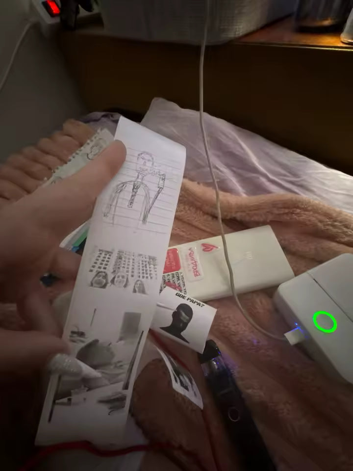 Complete Ready-to-Use Kit > The package includes a complete set of thermal paper rolls, ready for immediate use to ensure operational continuity from day one, along with a dedicated charging cable for quick and easy power management. It is the perfect solution for printing receipts, labels, reminders, notes, codes, and quick documents.